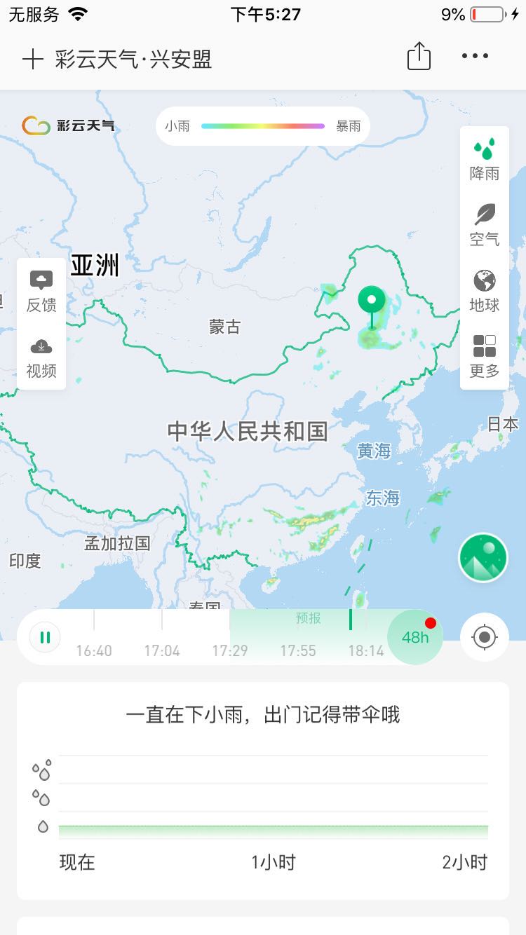 精確到分鐘級降水預報 長達五天的多數據源天氣預報 獨家全國降水雷達拼圖 關注地址獲取降雨提醒